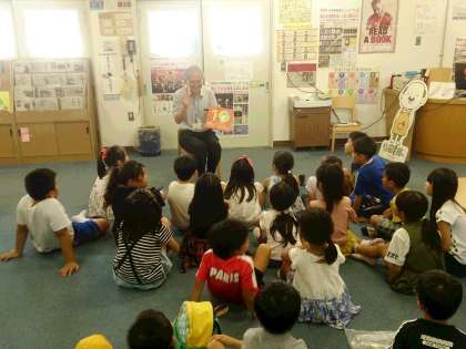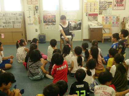 今日の図書館開放では、図書館支援員さんの読み聞かせや先生からの本の紹介がありました。