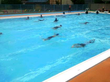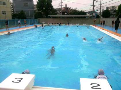 2学期、最初のプール学習は、4年生です。縦25mを使っての練習です。子どもたちは、一生懸命に練習に取り組んでいます。