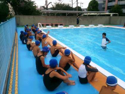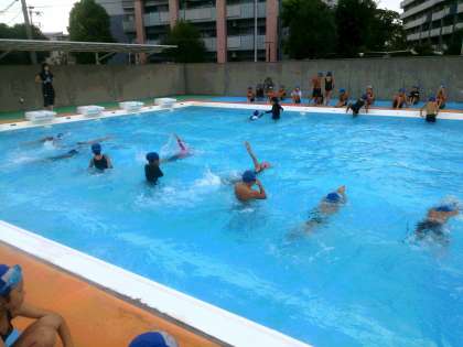 4年生に続いて、3年生のプール学習です。3年生は、「けのび」や「伏し浮き」「面かぶりクロール」など、基本の泳法を復習しています。