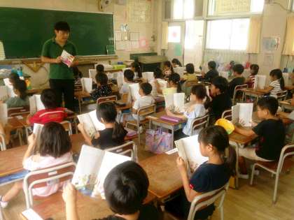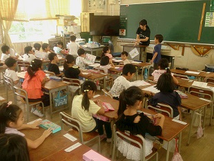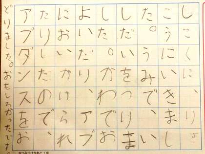 1年生は、詩の音読や夏休みの日記の発表に取り組んでいます。姿勢正しく音読ができています。下の写真は、1年生のある日の出来事を書いた日記です。