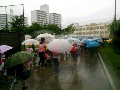 今日は、子どもたちは、雨の中ですが元気に登校しています。「おはようございます」と挨拶すると、傘をあげて、しっかりと目を見て挨拶を返してくれます。会釈もしっかりとできています。