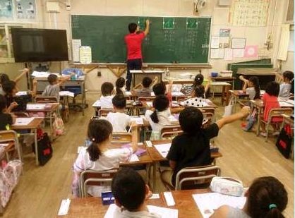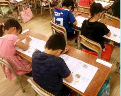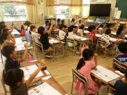 1年生は、国語の「カタカナ」の学習に取り組んでいます。子どもたちは、手を上げ、指でなぞり、ノートに書いていきます。とてもよく集中して学習しています。