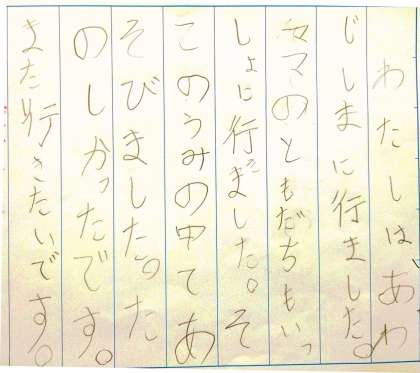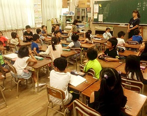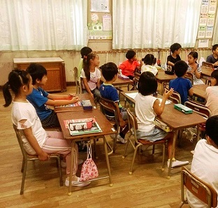 2年生に、新しくお友だちが転入学してきました。学級で、友だちに一人一人自己紹介をしています。下の写真は、2年生の夏休みのニュースです。