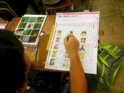 6年生の社会の歴史学習で、歴史人物に焦点を当てて学習に取り組んでいます。日本史の大きな流れと人物を重ね合わせて、歴史的事象についての理解を深めています。