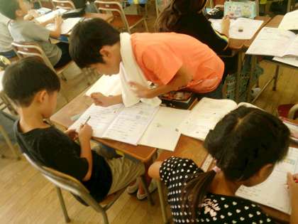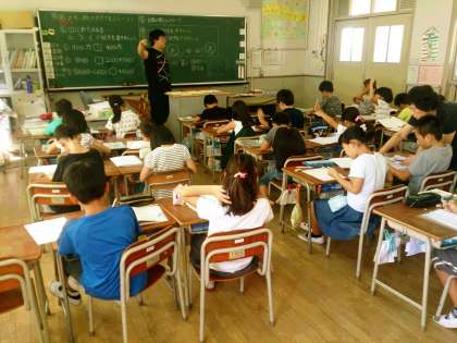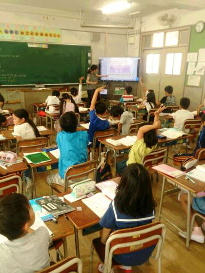 3年生の算数では、「大きい数の大きさをくらべよう」の学習に取り組んでいます。「数直線」等を使って、数の大小を比べています。