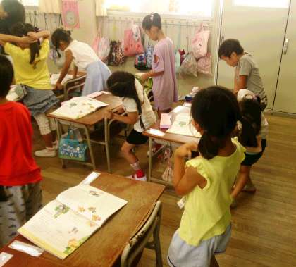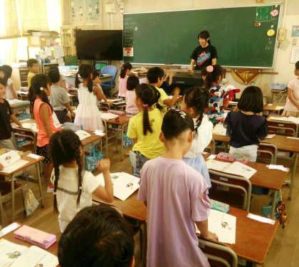 1年生は、音楽で、「いぬのおまわりさん」などの動物の出てくる歌を手拍子をしたり踊ったりしながら楽しく歌っています。