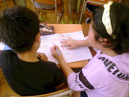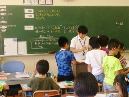 5年生の算数では、長方形の紙をしきつめてできる一番小さい正方形の一辺の長さを、最小公倍数を使って求める学習に取り組んでいます。