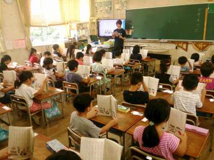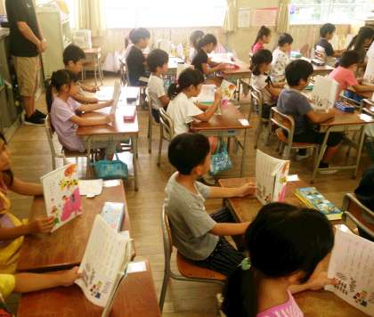 1年生の国語で、「かぞえうた」の学習に取り組んでいます。写真は、姿勢正しく全員で一斉読みをしている様子です。