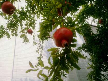 南門のざくろの実がなりました。子どもたちは、友だちと仲良く登校しています。