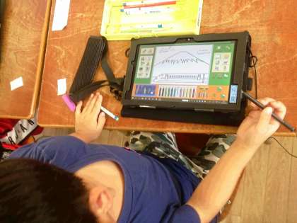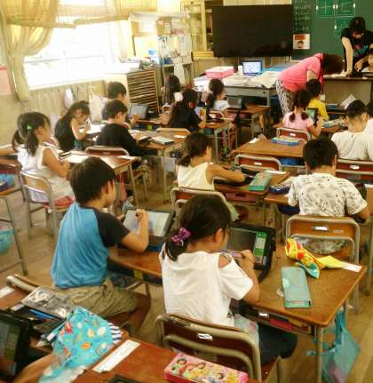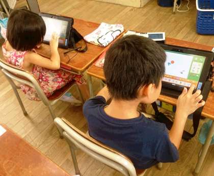 1年生の生活では、タブレットのお絵かきツールを使って、描画する学習に取り組んでいます。