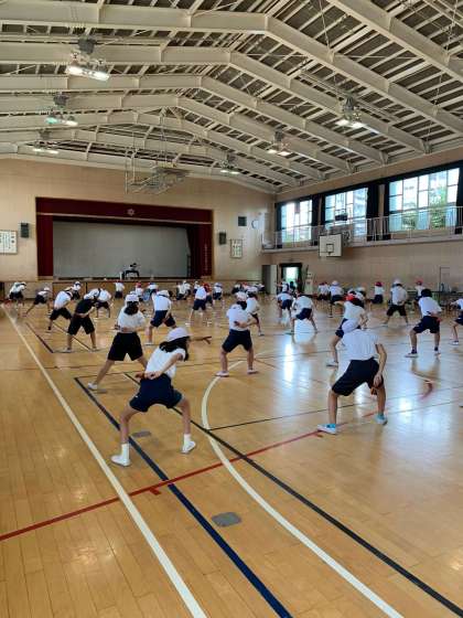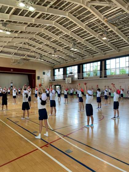 5時間目に講堂で運動会の団体演技の練習を行っていました。リズムが早くてまだまだついていくのがやっとという感じでしたが、みんな一生懸命がんばっていました。これからが楽しみです。
