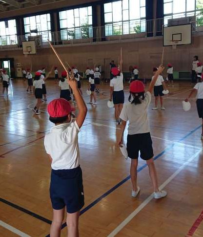 運動会に向けて、子どもたちは練習をがんばっています。今日は隊形移動の練習を行いました。