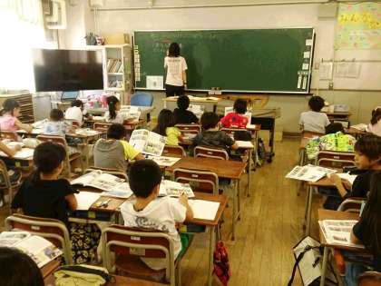 3年生の社会は、スーパーマーケットでの販売の工夫についての学習です。子どもたちは、しっかりとノート作業に取り組んでいます。