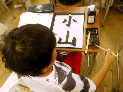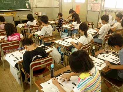 3年生は、国語で書写に取り組んでいます。「小山」という字を丁寧に書いています。