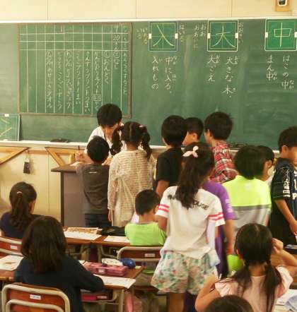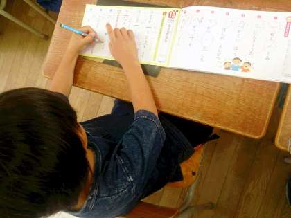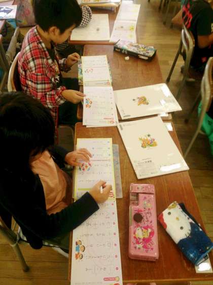 1年生の国語では、カタカナや漢字の練習に取り組んでいます。ドリルに、丁寧に書いていきます。