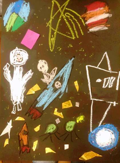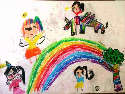 1年生の図工では、「のってみたいな いきたいな」の作品作りに取り組んでいます。子どもたちが、乗ってみたい雲のイメージを広げながら、想像したことを絵に表す活動を楽しめるように支援しています。