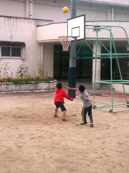曇り空の下ですが、今朝も子どもたちは、元気に登校しています。本日、9月21日(土)は、 土曜授業、学校公開、学校選択制説明会があります。子どもたちは、11時40分ごろ下校します。下の写真は、登校後、バスケットボールで楽しむ子どもたちの様子です。