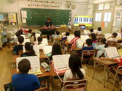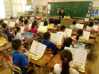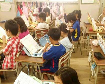 2年生の音楽では、鍵盤ハーモニカの合奏に取り組んでいます。リズムに合わせて、演奏しています。