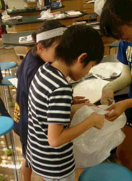 4年生の理科では、身近な物の性質について調べる実験をしています。 閉じ込めた空気を押すと手応え(弾性)があることなど、実験によって確かめています。