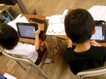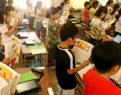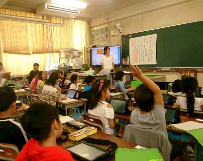 昨日、1年生の国語で、研究授業が行われました。物語文「サラダでげんき」で、主人公に、教えたいことを考える学習でした。タブレットに書き込んで、友だちに伝えたり、全体に発表したりと、子どもたちはとても積極的に学習していました。