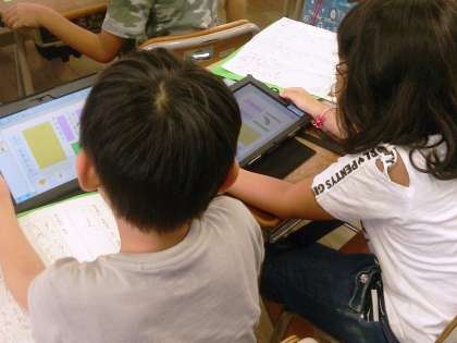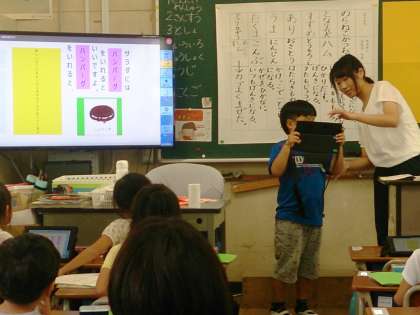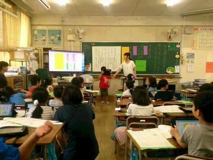 自分の考えたものが、学級全体で見れるように、大型液晶テレビで映して発表をしました。