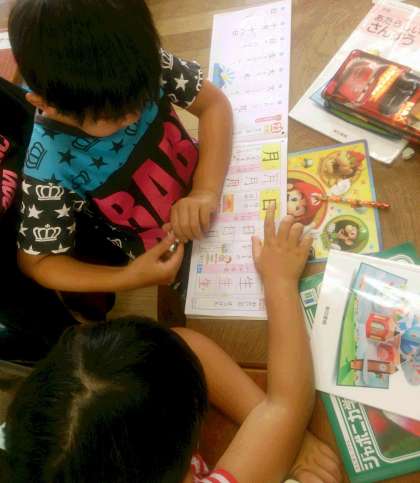 1年生の国語で、漢字学習に取り組んでいます。ドリルを活用して、新出漢字を覚えています。