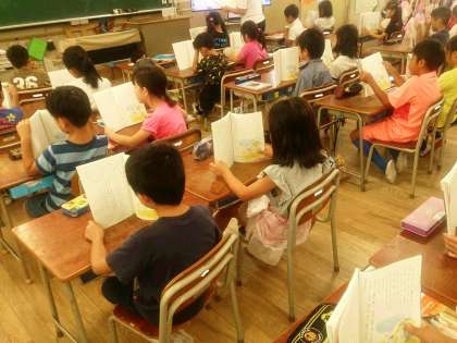 2年生の国語では、物語文「名前を見てちょうだい」の学習に取り組んでいます。先生の範読により、読みを深めています。