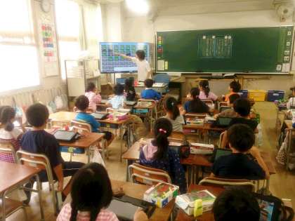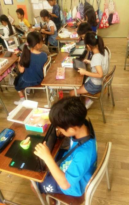 2年生の図工では、完成した「おべんとう」の作品をタブレットで撮影して、みんなに紹介する活動に取り組んでいます。