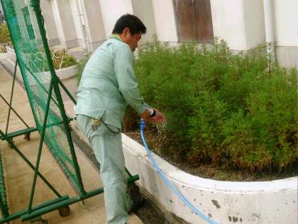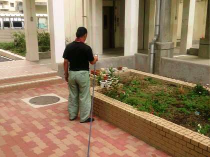 管理作業員さんが、毎日、花壇のお手入れをしています。