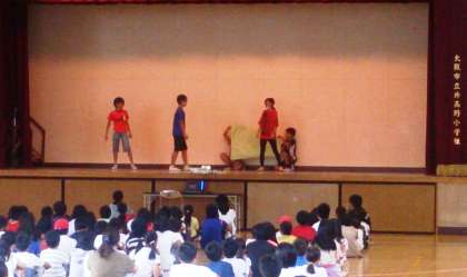 今朝の児童集会は、新聞委員会の発表でした。劇やクイズなど、みんなが楽しめる工夫がありました。
