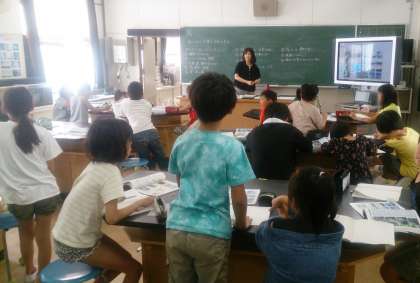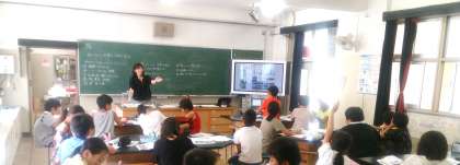 5年生の理科で、「ひろいはんいの雲と天気の変化」の学習に取り組んでいます。子どもたちは、調べて気づいたことを発表しています。