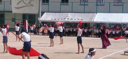 運動会をとても盛り上げてくれたのが応援団の子どもたちです。朝と昼の応援合戦だけでなく各学年の競技も全力で応援を繰り広げました。
