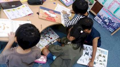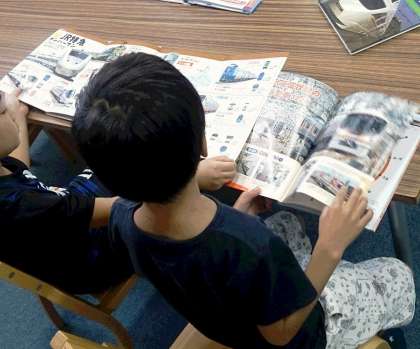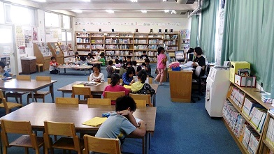 2年生国語、図書の時間に、読書活動に取り組んでいます。様子を見ていると、「先生、この本は面白いので、読んでください。」と声をかけてくれました。