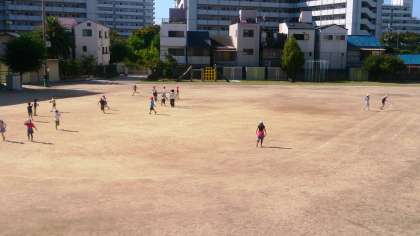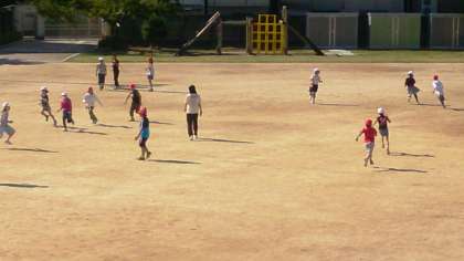3年生の学級活動で、運動場で学級遊びをしています。みんな楽しそうです。