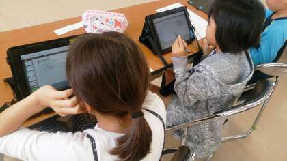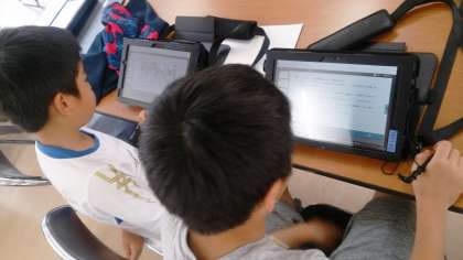 放課後に、タブレットドリルを活用した学習に取り組みました。「ドリル」「確かめ」「フォローアップ」「チャレンジ」と、子どもたちは、自分でプリントのコースを選択しながら学習を進めていきます。採点も自動でされるため、子どもたちは、確かめながら学習に取り組んでいました。
