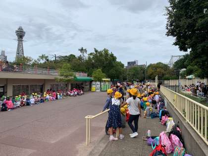 ぐるっと見学を終えて帰ってきました。今から昼食場所へ移動です。他の学校園からも約20校園くらいきています。