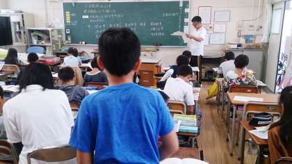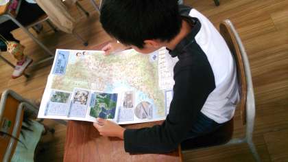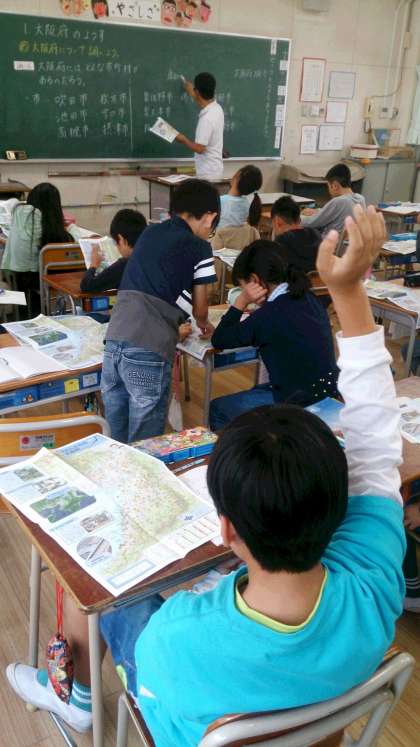 4年生の社会で、大阪府についての学習に取り組んでいます。大阪府の市町村について調べ、発表しています。