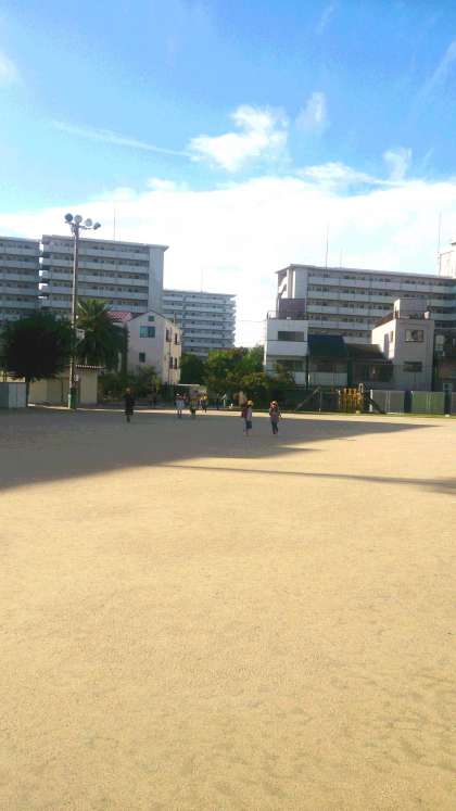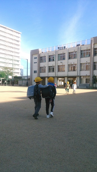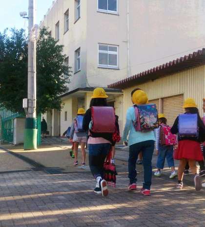 爽やかな秋空の下、子どもたちは元気に登校しています。