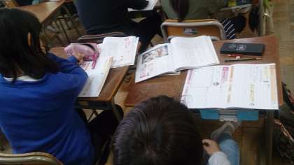 5年生の道徳では、ノートに自分の考えを書き込んでいます。