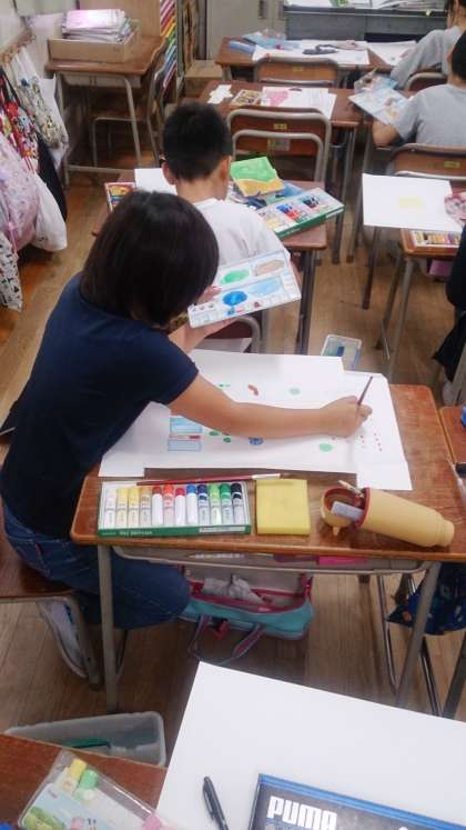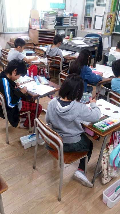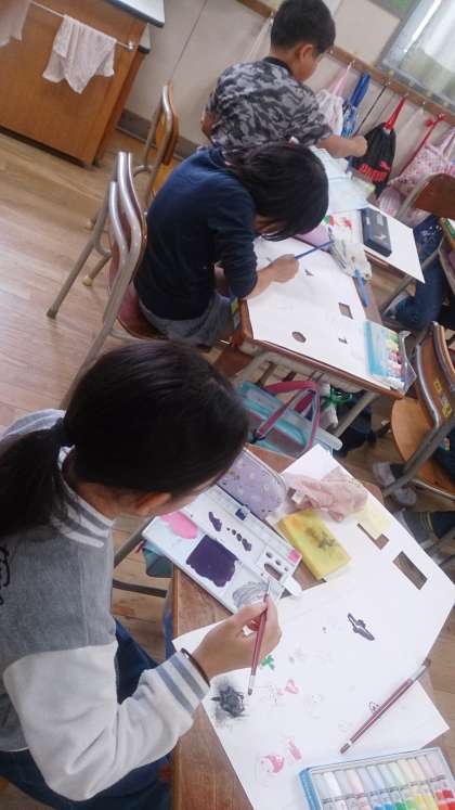 3年生の図工では、題材「立ち上がった絵のせかい」の作品づくりに取り組んでいます。立体的に配置した絵を創作していきます。