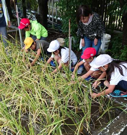 今日は、5年生が稲刈り・脱穀をしました。初めて体験する児童も多く、一生懸命に取り組んでいました。たくさんの地域の方にお手伝いいただき、ありがとうございました。