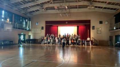 学習発表会に向けて舞台を使った学習に入っています。慣れないひな壇に立ち、教室よりも広い講堂に声を響かせることの難しさを感じながらも、一生懸命に取り組んでいます。