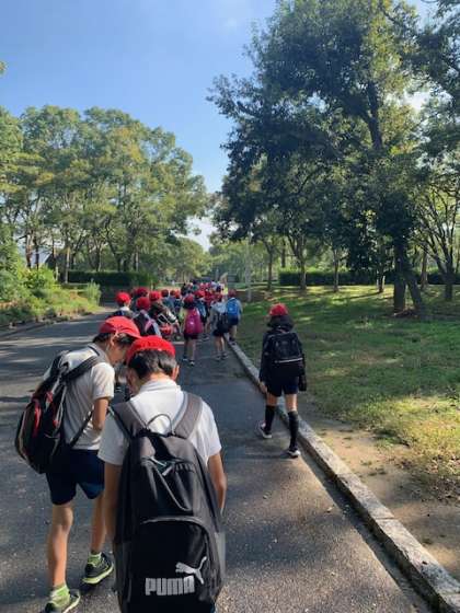 大泉緑地公園に到着しました。これから公園内で秋の草花等の観察をします。