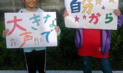 小中あいさつ週間は、8日まであります。児童会の子どもたちも、朝の挨拶が、「大きな声で」「自分から」「笑顔」でできるように、あいさつをしています。
