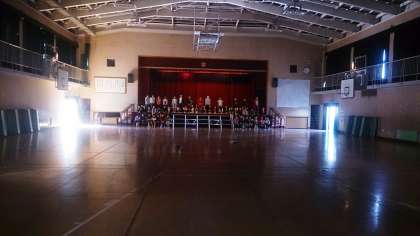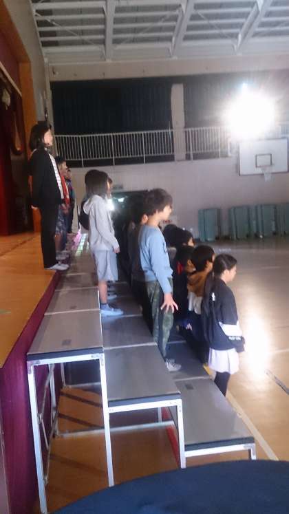 体育館では、4年生が、学習発表会の練習に取り組んでいます。きれいな歌声が、体育館中に響いています。