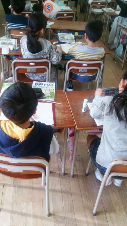 3年生の算数では、線分図や図を使って、文章題の課題解決学習に取り組んでいます。