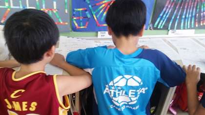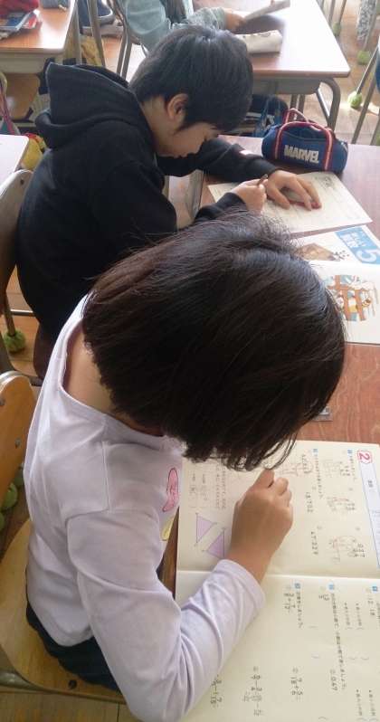 5年生の算数では、学習のまとめに取り組んでいます。プリントやドリルで、今まで習った学習を振り返っています。