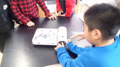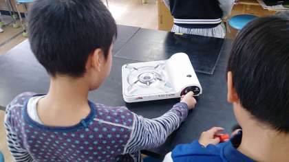 4年生の理科で、「実験用ガスコンロ」の使い方を学習しています。