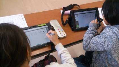 3年生の子どもたちは、てきぱきとタブレットに字や選択した記号を入力していきます。