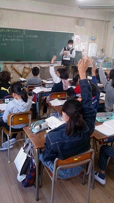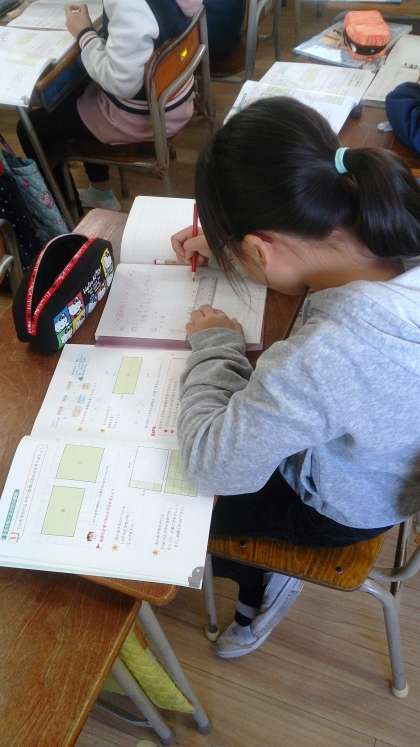 4年生の算数では、面積の学習に取り組んでいます。子どもたちは、とても活発に、意見を発表しています。